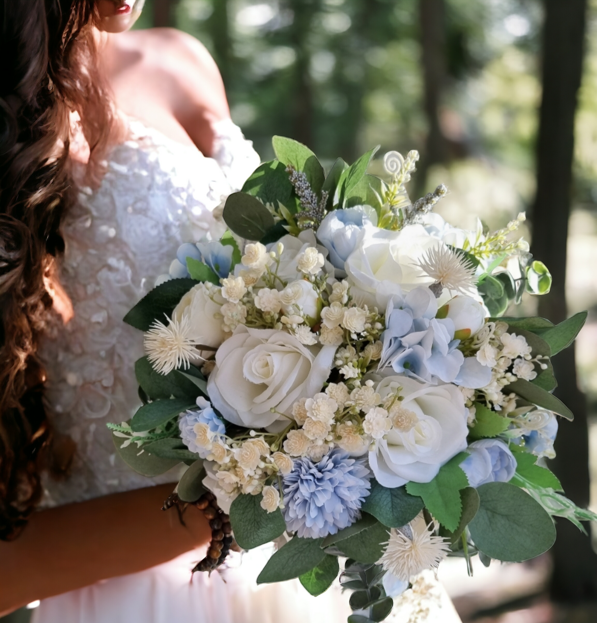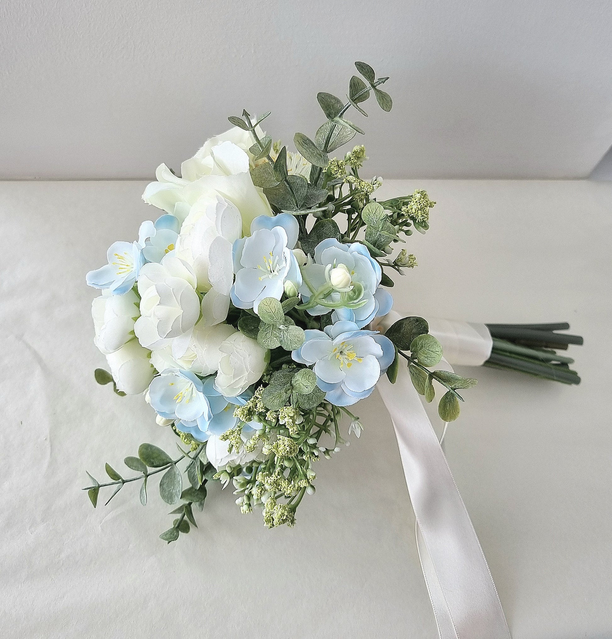 For brides looking for that extra delicate colour palette. A delightful collection of the prettiest faux blooms in subtle pale blues completed with ivory and a splash of muted greenery.